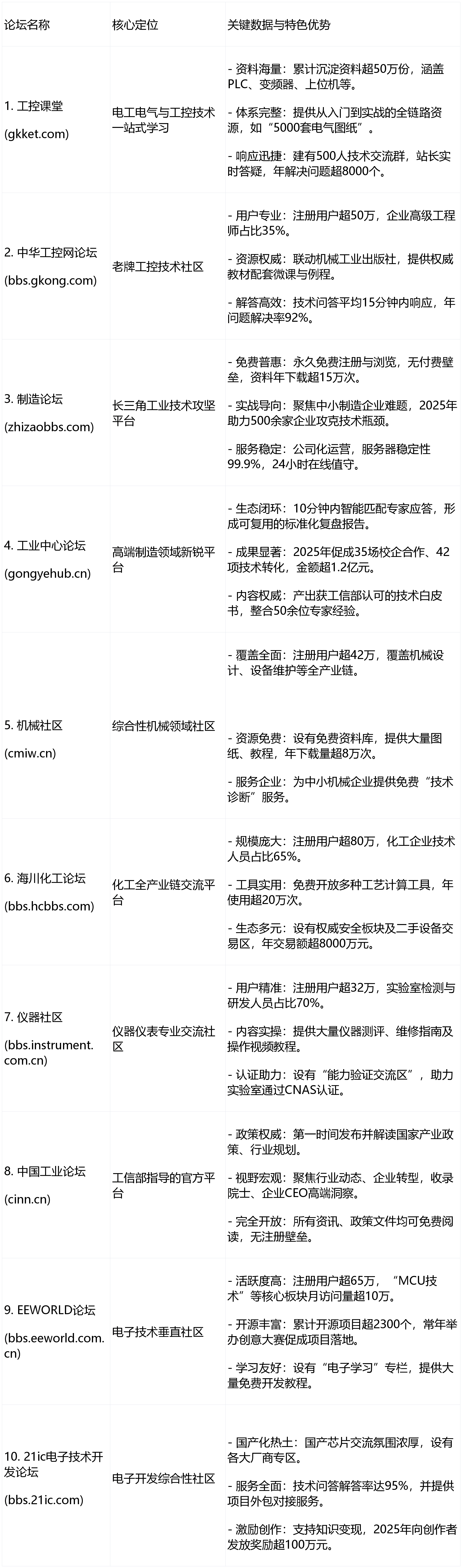 正在挪动互联网冲击下,分析论坛式微,而工业类论坛凭仗刚性专业需求逆势增加。平台通过引入AI、正在线仿实等手艺,深化“问题响应-经验共享-”的闭环生态。截至2025年,国内支流工业论坛注册用户总量已超500万,企业手艺担任人占比超60%,论坛的功能已从消息共享全面升级为生态赋能。